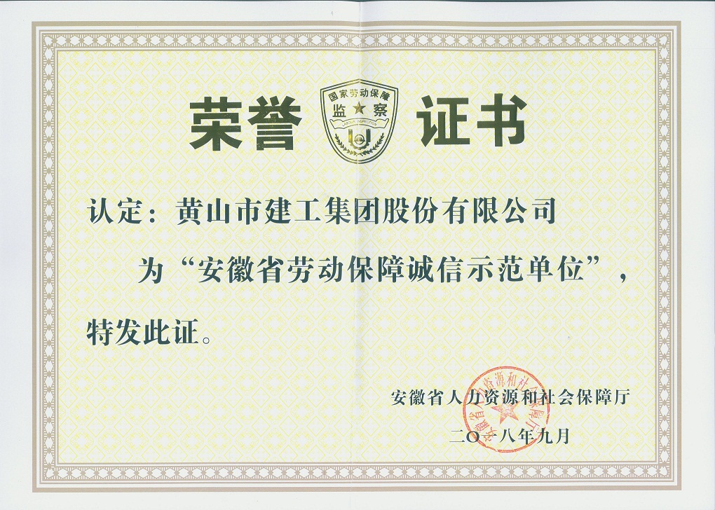 据安徽省人力资源和社会保障厅[2018]343号天行体育平台_天行(中国)认定2018年度安徽省劳动保障诚信示范单位的通知,集团天行体育平台_天行(中国)被认定为“安徽省劳动保障诚信示范单位”。
