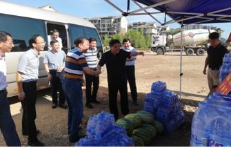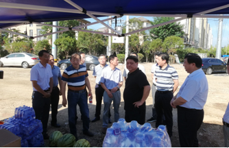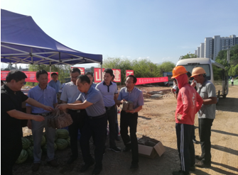 烈日下的八一大桥项目现场一片繁忙景象,工人们有的在支模、有的在焊接钢筋、有的在浇筑砼,一切都井然有序,忙而不乱。屯溪区区委书记江善良一行一到现场,就将一件件防暑降温慰问品递到在施工的工人们手中,并嘱咐在高温下施工的操作人员要多注意休息、及时补充水分和营养,按项目部要求合理安排工作时间,避免中午高温时间段施工,同时要求项目部积极做好防暑降温工作,保障施工一线工人的生命安全。充分体现了屯溪区委、区政府等领导对我集团天行体育平台_天行(中国)的一片深情厚谊和关怀。