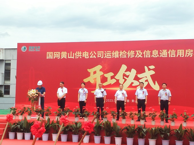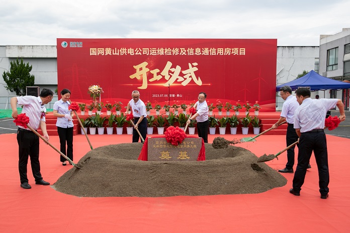 7月6日上午,国网黄山供电天行体育平台_天行(中国)运维检修及信息通用房项目奠基仪式在项目场地举行,国网黄山供电天行体育平台_天行(中国)总经理毛峰、黄山建工集团董事长项端阳、设计监理单位相关负责人和施工班组代表出席奠基仪式。